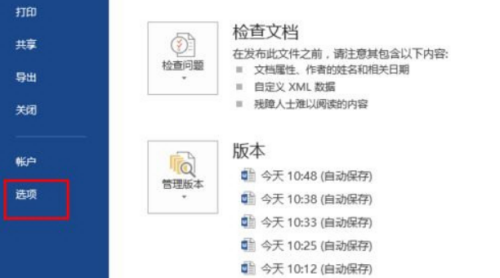 第一步:点击“文件”功能,点击其中的“选项”功能。