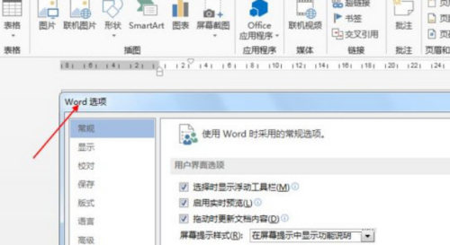 第二步:点击后弹出word选项对话框,点击“高级”功能。