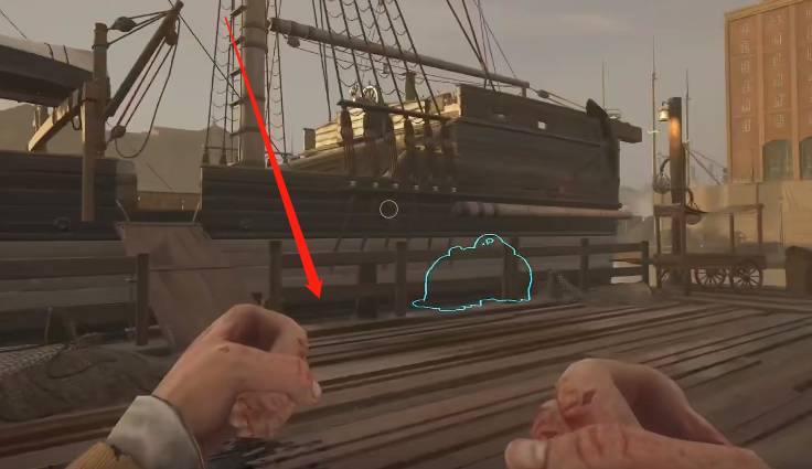 Dread Hunger中下船需要依靠桅杆,首先加入一个联机战局,找到船的桅杆按e爬上去,最好爬到视线能和对面房子齐平的程度,然后按下F11,隔0.5秒再按空格,此时会窗口化,然后玩家会发现自己浮空了,这时候从上面跳下来就可以了。