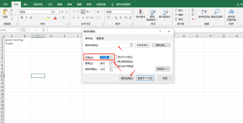 第三步:输入需要查询的内容,点击查找全部,其中范围一栏选择工作簿,如图所示。