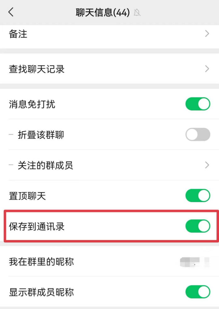 或者,可以提前在某个重要群聊的群菜单中,打开“保存到通讯录”选项。此后在“通讯录”-“群聊”里即可随时找到。