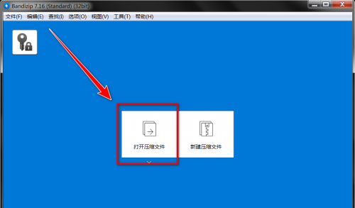 第一步:打开Bandizip,点击“打开压缩文件”。