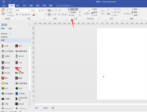 第五步:接下来我们就可以利用Visio左边栏的“家具图”形状图以及工具栏中的工具进行绘制家具图了。如下图: