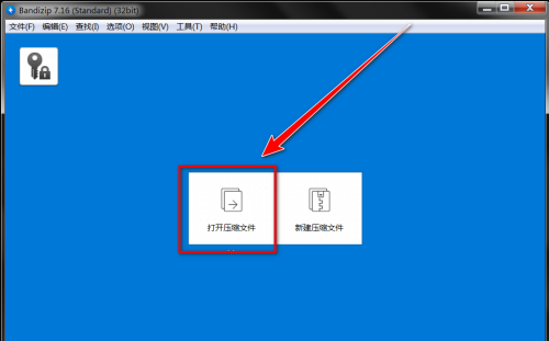 第一步:打开Bandizip,点击“打开压缩文件”。