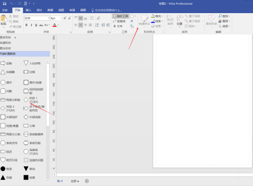 第六步:接下来我们就可以利用左边栏的“形状图”以及工具栏中的工具进行绘制TQM图了。如下图: