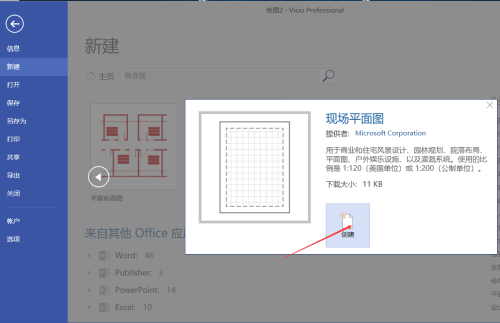第五步:选择“现场平面图”,并点击“创建”,如下图: