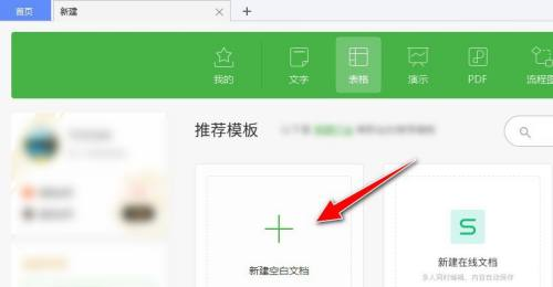 第二步:进入到软件操作的主界面,选择"文字"->"新建空白表格"菜单选项。