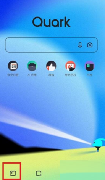 第一步:打开夸克浏览器,在搜索首页点击书架;