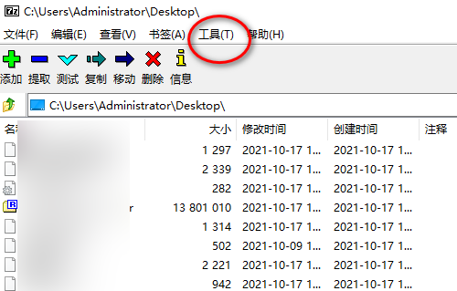 第一步:打开软件以后,我们点击7-Zip菜单栏目上的工具。