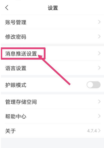 第三步:在“设置”页面,点击其中的“消息推送设置”选项。