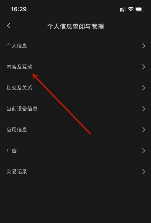 第二步:在个人信息查询与管理中,点击内容及互动。