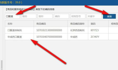 第六步:输入药品名称,单击“搜索”,找到相关商品编码信息。