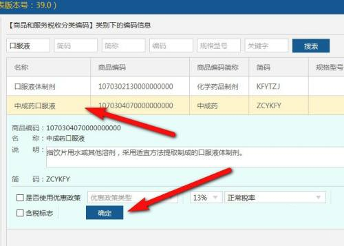 第七步:单击选中正确的商品编码,单击“确定”即可对药品完成赋码。