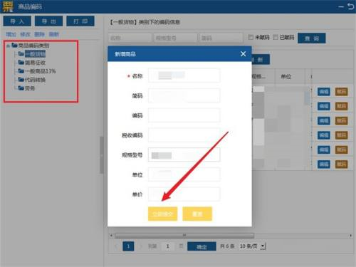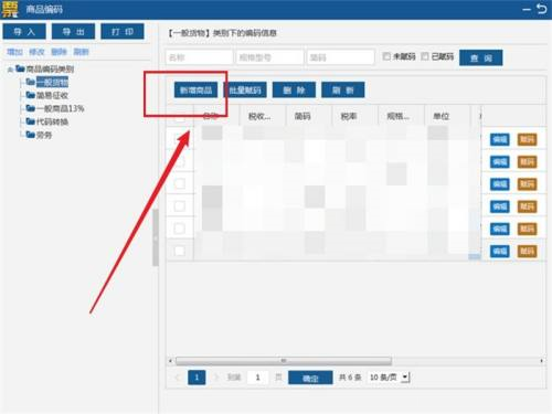 第四步:勾选新增的商品,点击右侧的赋码,在弹出窗口选择商品对应的税收分类编码,点击确定即可。