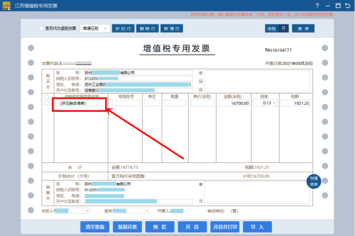 第三步:自动回到发票主界面上,同时在货物或应税劳务名称中,显示详见销货清单,确认发票内容没有问题的情况下,点击开具并打印即可。