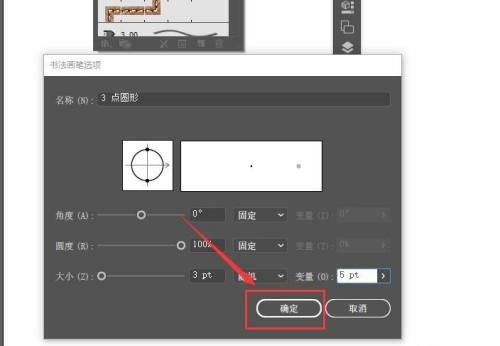 第四步:接着,在弹出的书法画笔选项中,找到“大小”,在后下面的选项中选择“压力”,变量值根据需求设置,这里小编之前设置的是“5pt”左右(如图所示)。