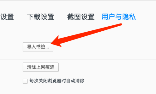 第三步:在用户与隐私中,点击导入书签按钮。