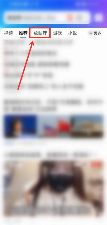 第一步:打开QQ浏览器首页,点击页面顶部“放映厅”。