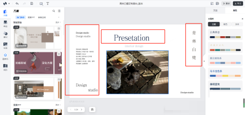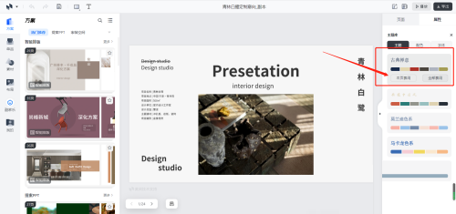 第三步:属性中包括了主题、配色及字体,可以按照自己喜欢的风格去选择。