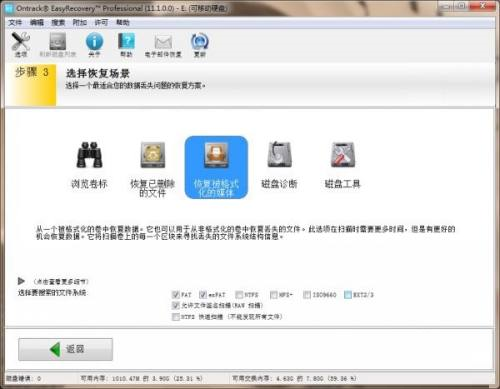 第二步:然后再选择恢复被格式化的媒体。没有问题后直接点击继续。