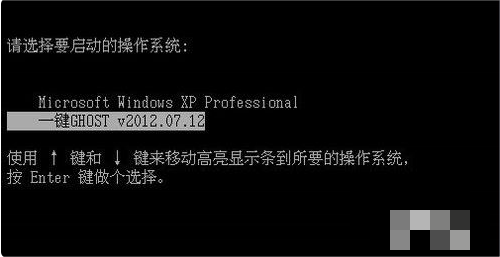 2.重启电脑,在系统选择界面按下方向键下键,让系统从”GHOST硬盘版“启动。