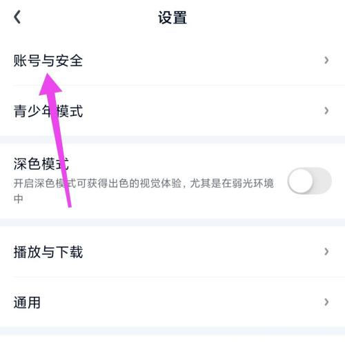 第三步:在设置页面内点击爱奇艺的“账号与安全”;