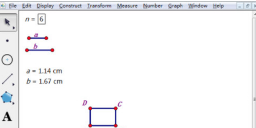 第三步:使用线段工具画固定线段a、b,作为矩形的长和宽。