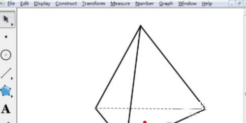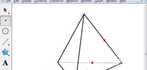 第二步:在三棱锥上确定一个面。 鼠标点击侧边栏“点工具”,在三棱锥的三条棱上面画上三点,作为确定一个面的顶点,如下图所示。