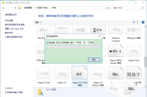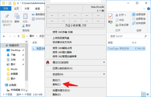 将刚刚复制的方正小标宋简体,粘贴到字体文件夹中。