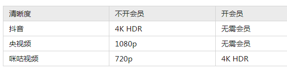 抖音:所有画质免费,无广告,最高支持 4K HDR 画质(看描述似乎支持 50/60fps 高帧率)