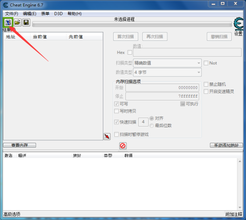 第二步:点击Cheat Engine上方并打开游戏的进程。