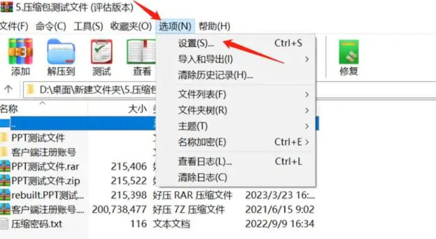 打开WinRAR,选择工具栏中的选项 – 设置