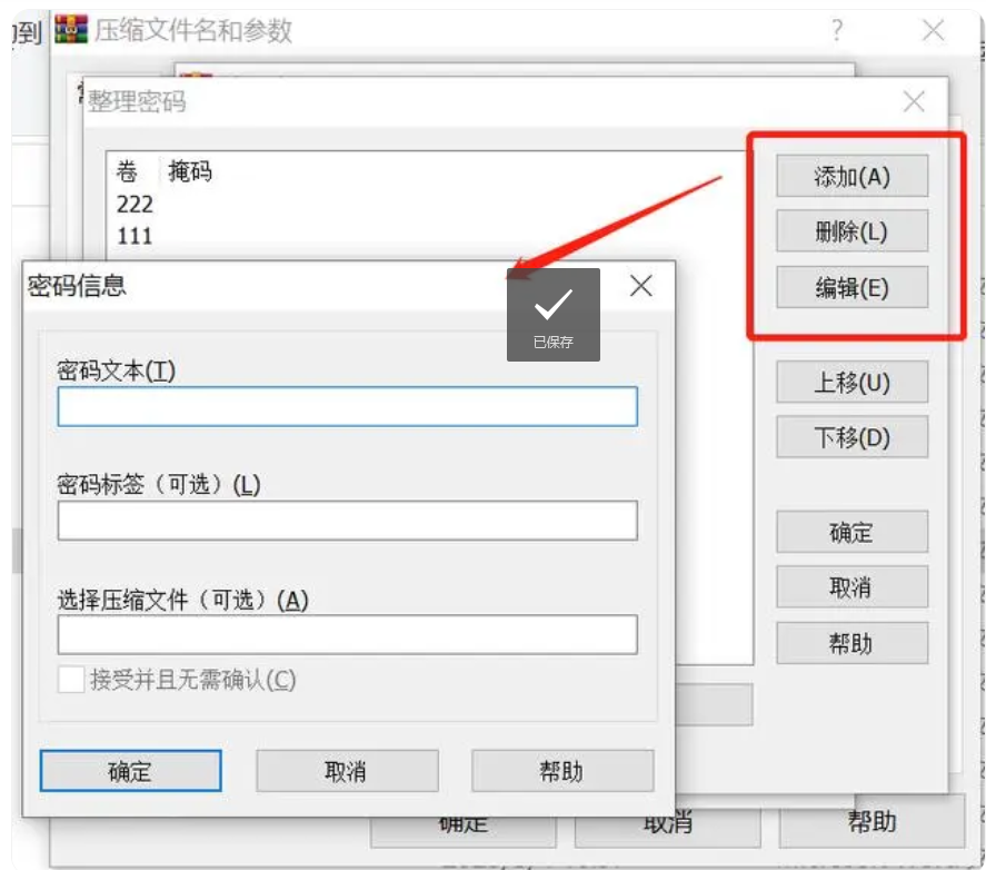 在整理密码界面,我们将所有想要加密的压缩包密码添加进去,就可以了。
