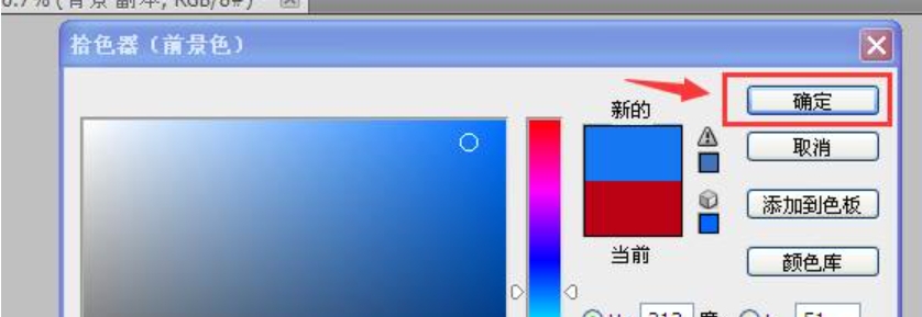 4、然后点击左栏的前景色“红色”,修改为“蓝色”。