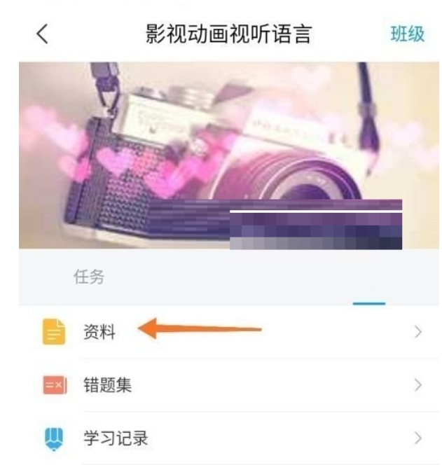 2、进入课程后,选择更多菜单栏,点击资料选项。