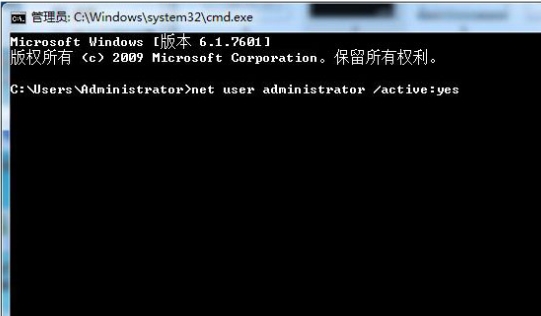 打开菜单—输入“cmd”,选择以管理员权限运行,输入“net user administrator /active:yes”(),如果正确则会提示“命令成功完成”