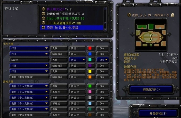 3、选择地图,点击“开始游戏”