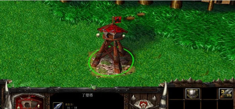 六、瞭望塔,兽族的瞭望塔一旦建成就可以直接拥有攻击属性。在敌人进入他的攻击范围后,就会自动攻击。他可以攻击飞行的敌方单位,也可以攻击建筑物。我们在他的技能面板那里可以知道,按s键( stop)可以让他停止攻击。