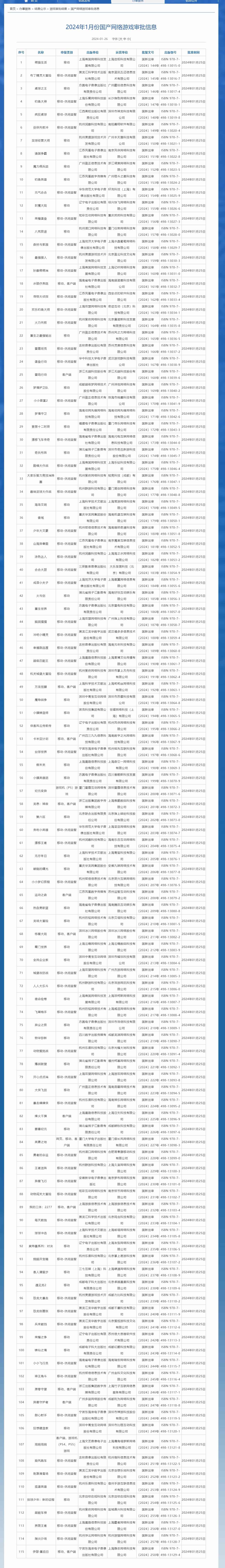 国家新闻出版署公布了1月份国产网络游戏审批信息,共115款游戏获批。其中包括4款客户端游戏、8款移动兼客户端游戏、1款PS游戏、1款PS兼客户端游戏、1款网页兼移动兼客户端游戏,其余100款为移动游戏(含58款休闲益智类移动游戏)。以下是该批游戏的具体信息。