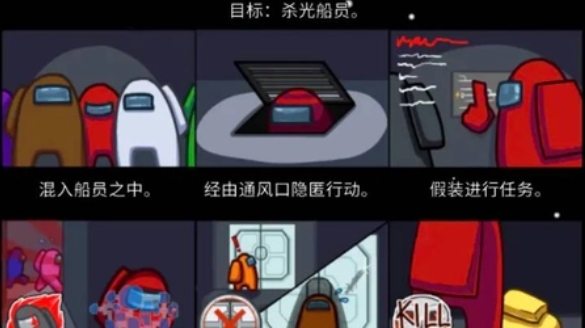 太空船的维修、导航、样本收集等等。完成任务可以使太空船正常运行。每个人的任务都略有不同。宇航员需要一边完成任务,一边观察其他玩家,以找出狼人。