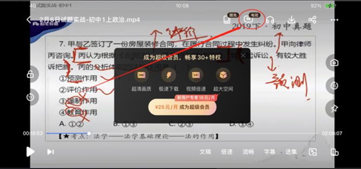2、然后用户在播放过程中点击屏幕,出现进度条界面,然后选择点击左上角的截屏按钮。