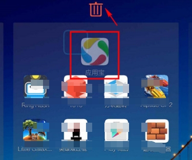 1、首先找到【应用宝】的应用图标,长按应用图标将其拖到“删除”图标内。