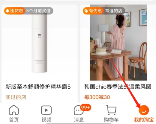 打开淘宝软件并进入首页,点击右下角的“我的”选项,进入个人中心页面。