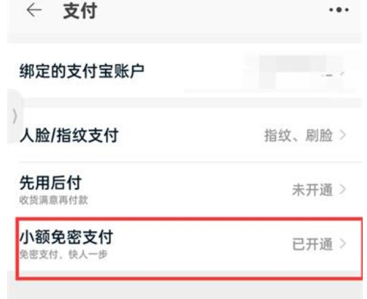 在支付设置页面中,找到并点击“小额免密支付”选项,进入小额免密支付页面。