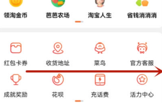 在个人页面往下滑动,找到“红包卡券”这一栏,并往右滑动。