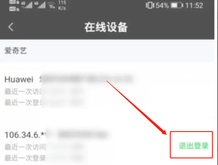 5、看到在线登录的设备,点击后方的退出登录即可