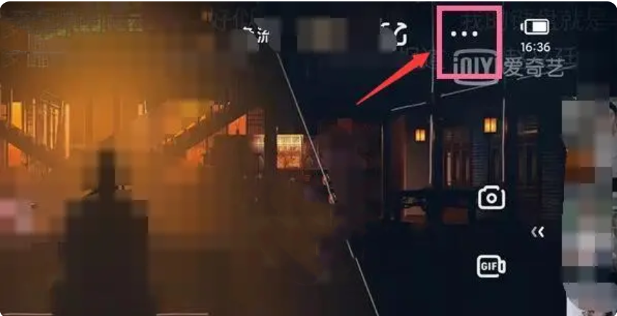 1、打开爱奇艺app,在视频全屏播放页面,点击右上角的三点图标。