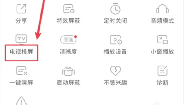 在弹出的设置或功能页面中,点击【电视投屏】选项。这个选项允许您将直播内容投射到支持投屏功能的电视上。