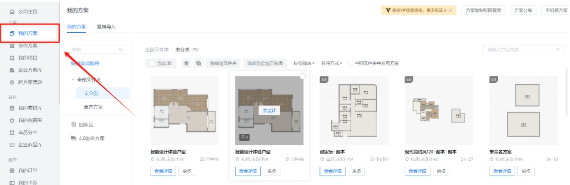 1、打开酷家乐软件,并在软件界面左侧的“我的方案”中找到自己的室内设计方案。