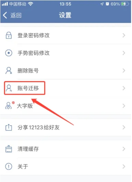 2、进入设置页面,点击“账号迁移”。